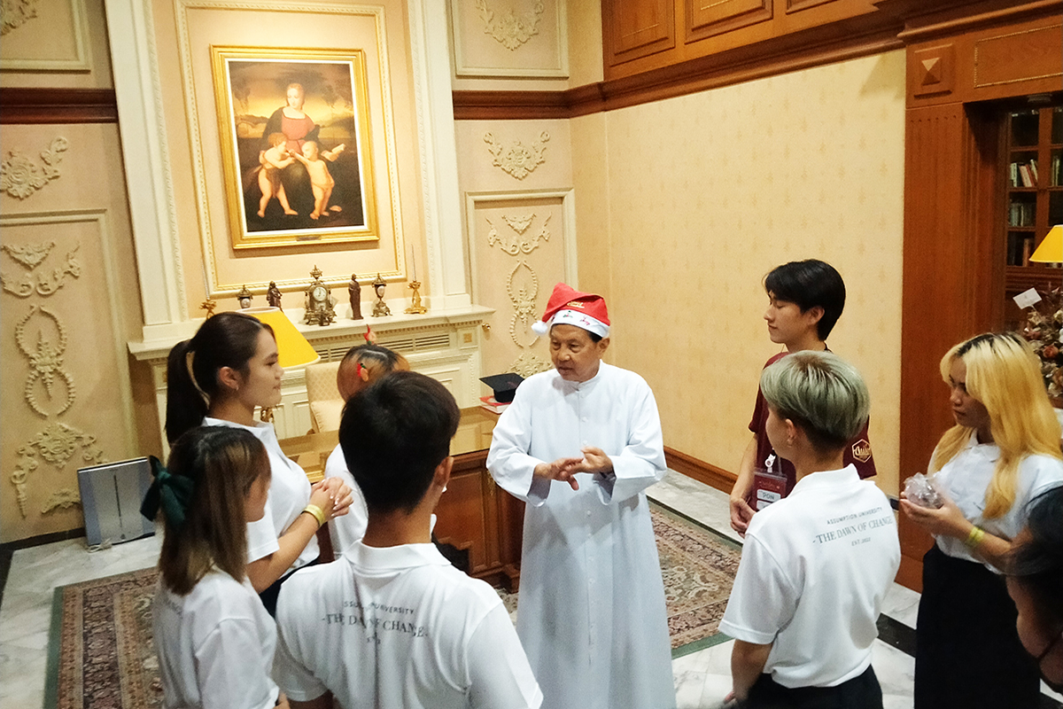 The Assumption University Student Organization (AUSO) committee member led by Mr. Ratchaphon Chatpayak, President of AUSO, met and delivered warm wishes for Merry Christmas and Happy New Year 2023 to Rev. Bro. Dr. Bancha Saenghiran, President of Assumption University of Thailand (AU) at the President office, Srisakdi Charmonman IT Building, Suvarnabhumi Campus.